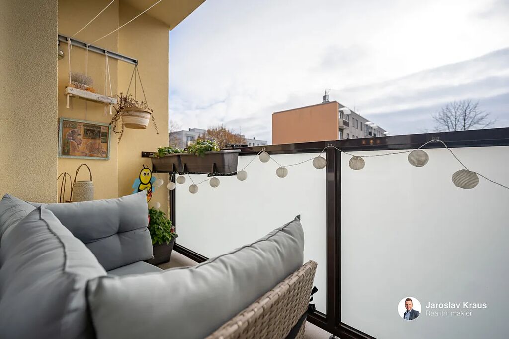 Z lodžie o velikosti 4 m² si můžete vychutnat klidné chvíle u kávy nebo si zde vytvořit svůj malý zelený koutek.