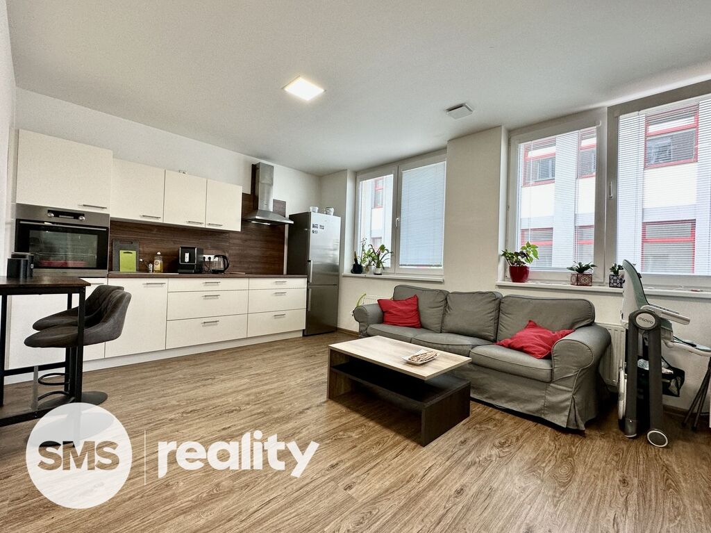 Hlavním prostorem bytu je prostorný obývací pokoj s kuchyňským koutem. Kuchyňská linka je vybavena veškerými potřebnými spotřebiči, včetně lednice, trouby, dřezu, digestoře a varné desky, abyste měli veškeré vybavení na dosah ruky. Výklenek v místnosti je elegantně využit jako vestavěná postel, která vytváří zajímavý a praktický prvek. Součástí bytu je také sklepní kóje o velikosti 6m2.