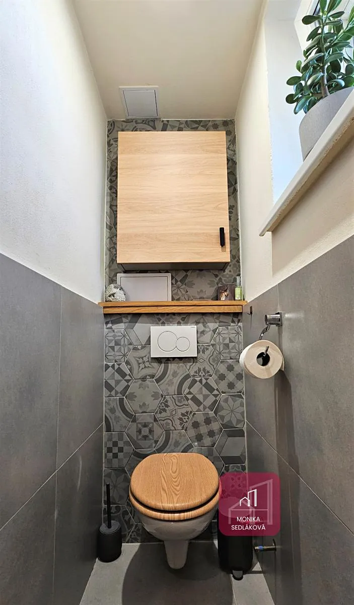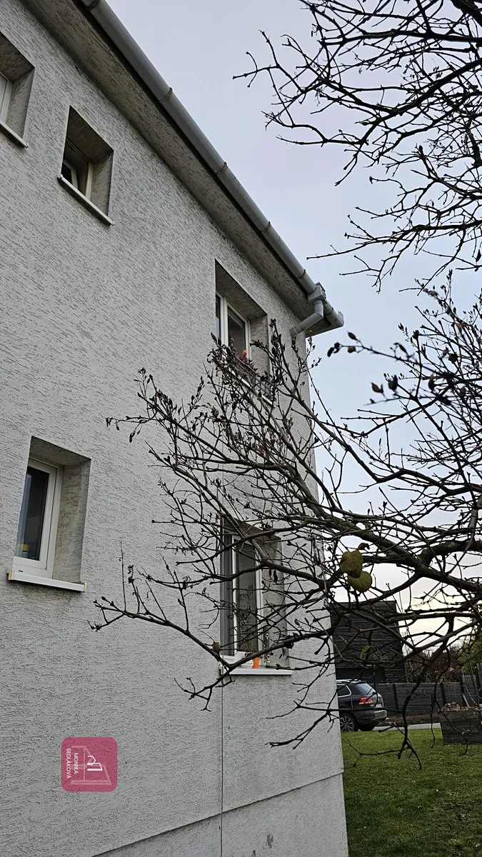 Jeho velkou předností je nejen dispozice, ale také nadčasová rekonstrukce samotného bytu a zahrada kolem domu.