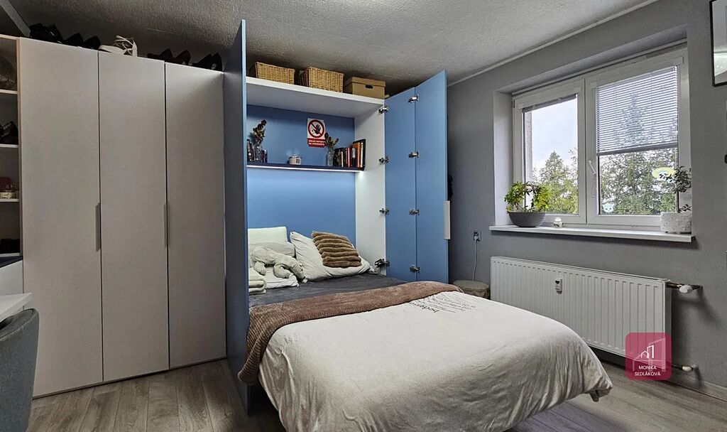 Výměry pokojů: kuchyň 10 m2, spíž 1 m2, obývací pokoj 26 m2 průchozí do ložnice 14 m2, předsíň 6 m2, koupelna se sprchovým koutem a umyvadlem 3 m2, samostatná toaleta s oknem 2 m2. Byt je orientovaný na východ a západ.