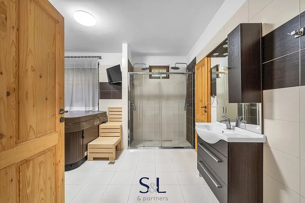 - Jedna z ložnic má vlastní koupelnu se sprchovým koutem a wc