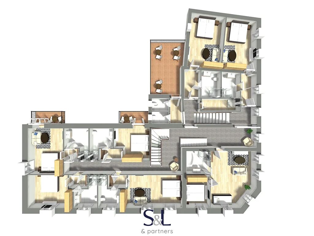 Aktuálně hotel úspěšně funguje a těší se stabilní klientele. Nabízí 14 designových pokojů s kapacitou 41 lůžek, elegantní restauraci s kavárnou, moderní wellness se dvěma saunami, vířivou vanou a relaxační zónou. Díky atraktivní poloze a jedinečnému zázemí představuje hotel nejen místo s prestiží, ale také silný investiční potenciál s možností dalšího rozvoje.