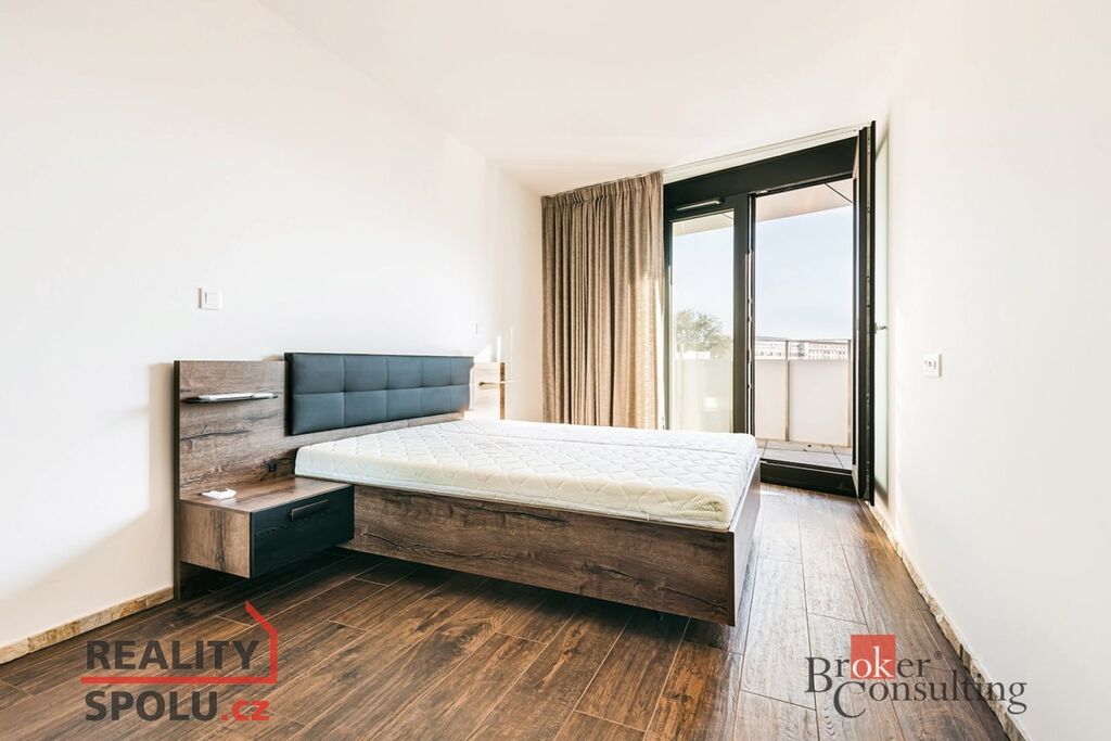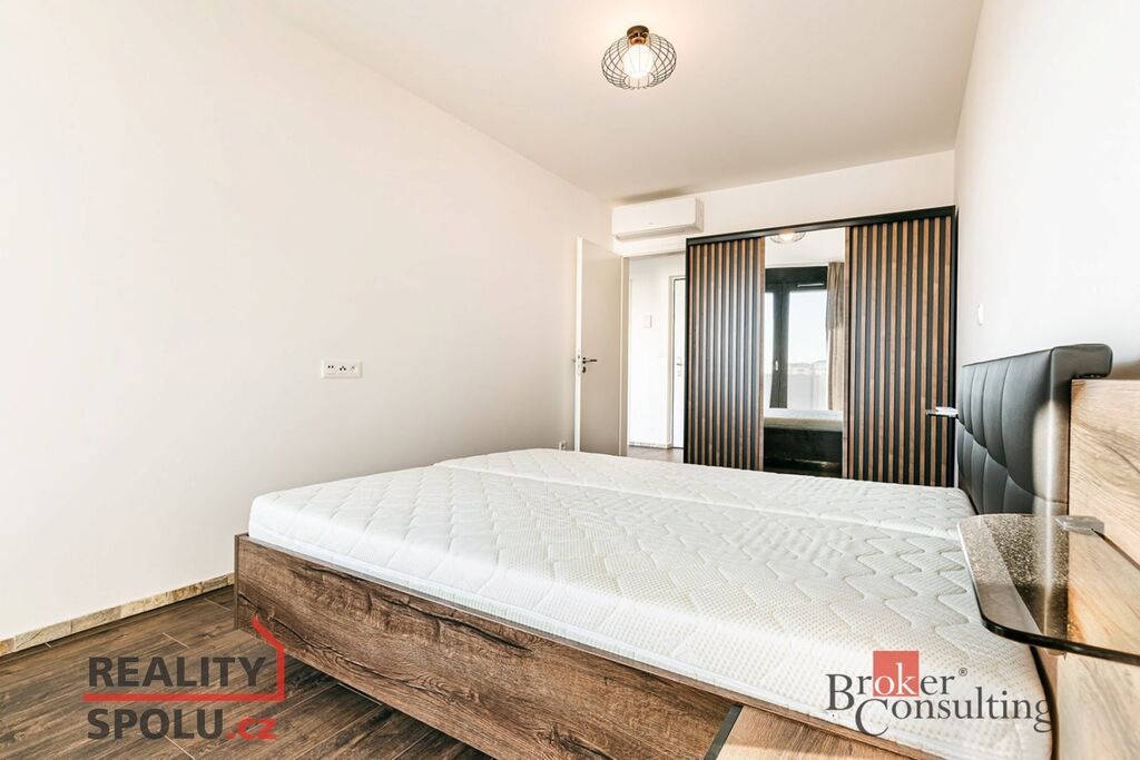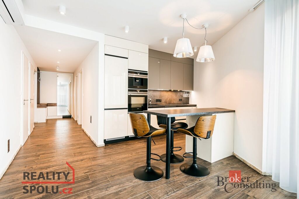 Byt působí velmi prostorně a světlé interiéry doplňují velkoformátová okna s přímým vstupem na terasu. Dispozici tvoří obývací pokoj s kuchyňským koutem, dvě samostatné ložnice, koupelna se sprchovým koutem, samostatná toaleta a vstupní hala s úložným prostorem. Kuchyňská linka je kompletně vybavena vestavěnými spotřebiči – indukční deskou, troubou, myčkou, vinotékou, lednicí s mrazákem a digestoří, součástí pronájmu je veškeré vybavení jak je na fotografiích, stačí se tedy nastěhovat.