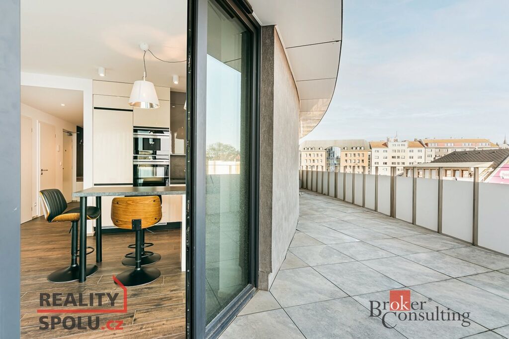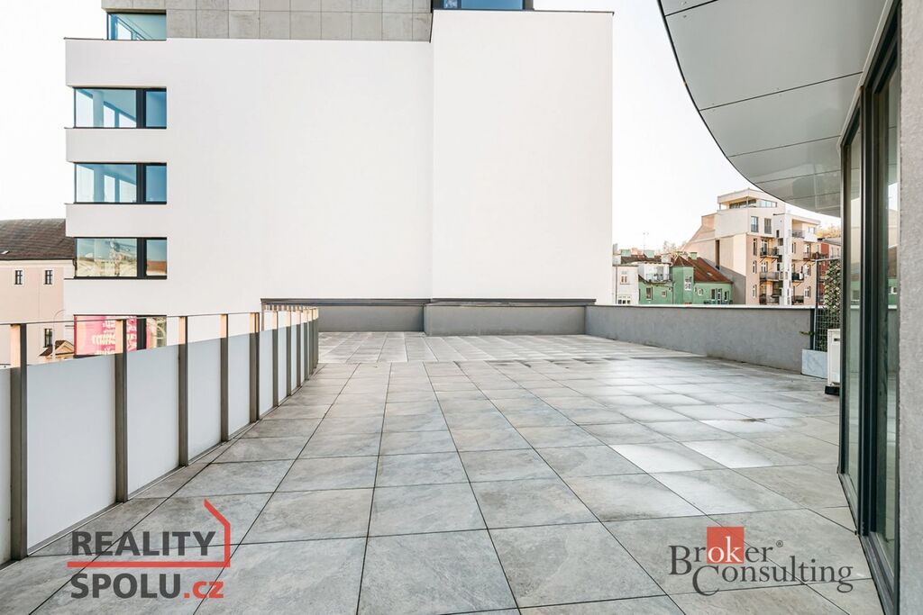 Byt nabízí podlahové vytápění a klimatizaci, které zajišťují komfortní teplotu po celý rok. Velká terasa poskytuje dostatek prostoru pro posezení a relaxaci s výhledem na okolní město.