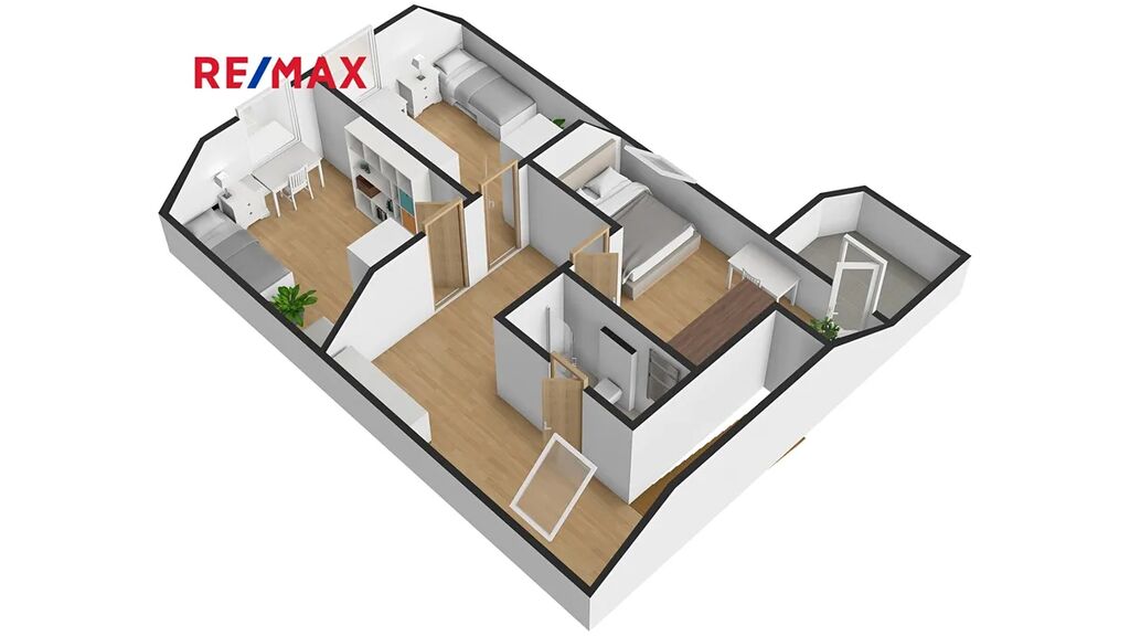 Jedná se o polovinu dvojdomu, přičemž obě poloviny domu jsou vzájemně odděleny, mají samostatné pozemky, vjezdy i vchody. Tento patrový dům má celkem tři podlaží, kdy v suterénu se nachází menší sklep a dvě nadzemní podlaží nabízí celkem šest pokojů, což zajišťuje dostatek prostoru pro rodinné bydlení či další využití viz přiložené orientační plánky.