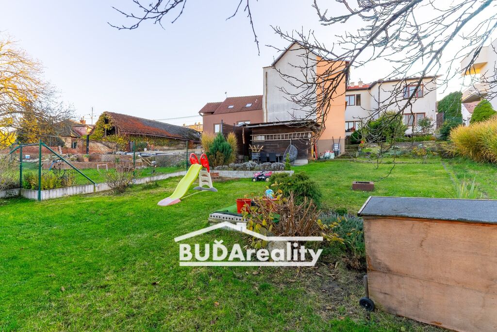 Řadový rodinný dům se zahradou stojí u vedlejší komunikace v ulici 4. května. Nezbytnou součástí každé nabídky domu je oplocená zahrada o výměře 317 m2, která se nachází za domem. V současnosti se můžete v letních dnech osvěžit v bazénu nebo posedět s přáteli. Pro zahradní potřeby apod. tu slouží zahradní domek.