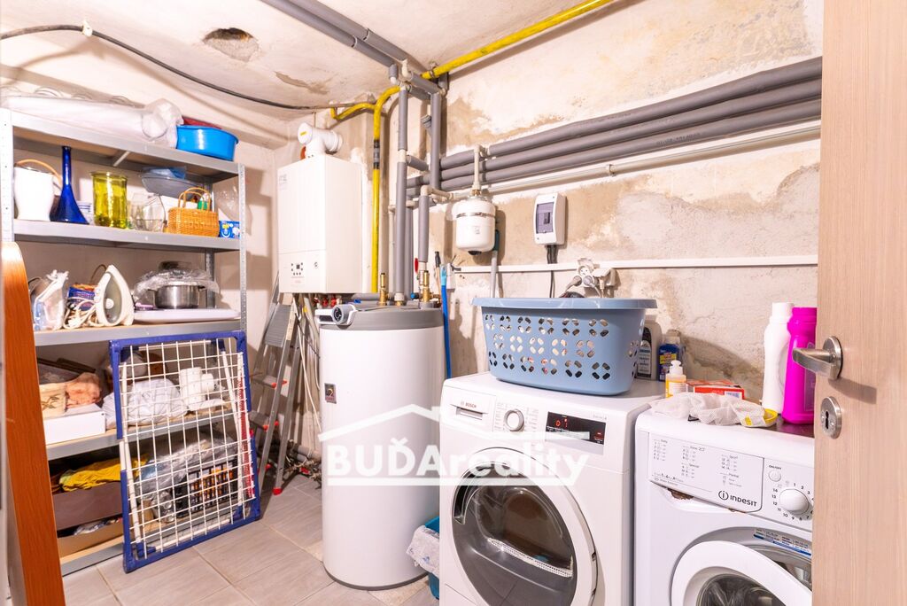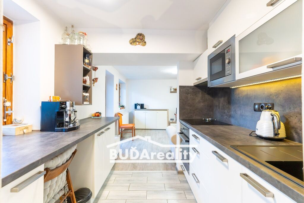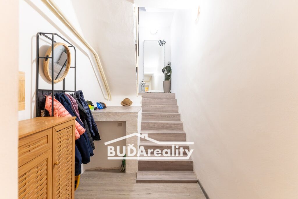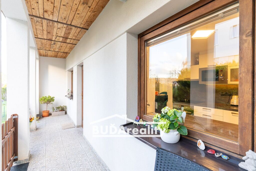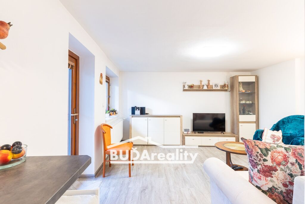 Menší byt má ideální parametry pro 1-2 bydlící osoby. Tato bytová jednotka se samostatným vstupem z chodby má výměru cca 40 m2. Disponuje prostornou lodžií s výhledem do zahrady. Má prostorný obývací pokoj, kuchyň s jídelnou, pokoj, sloužící jako společenská místnost, koupelna s wc a technická místnost. Technická místnost slouží pro celý dům. Zde je k dispozici plynový kotel a zásobník vody pro ohřev vody. Kuchyň disponuje moderní kuchyňskou linkou včetně spotřebičů. Tato část domu prošla kompletní rekonstrukcí včetně rozvodů v r. 2018.