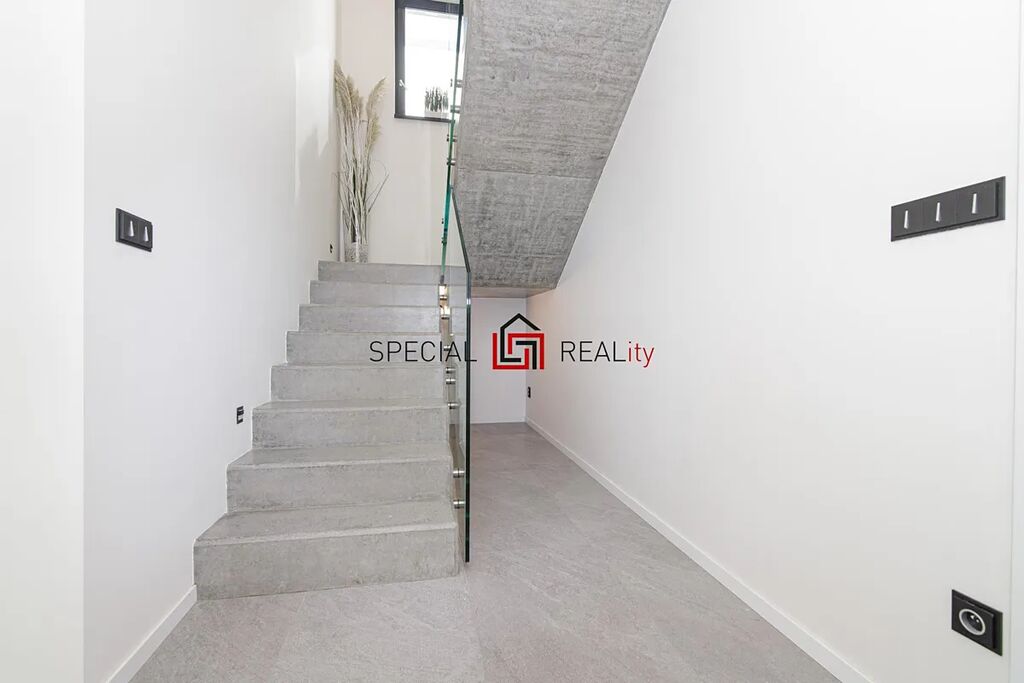 - stropy a schodiště z pohledového betonu dodávají prostoru moderní design a nadčasovou eleganci