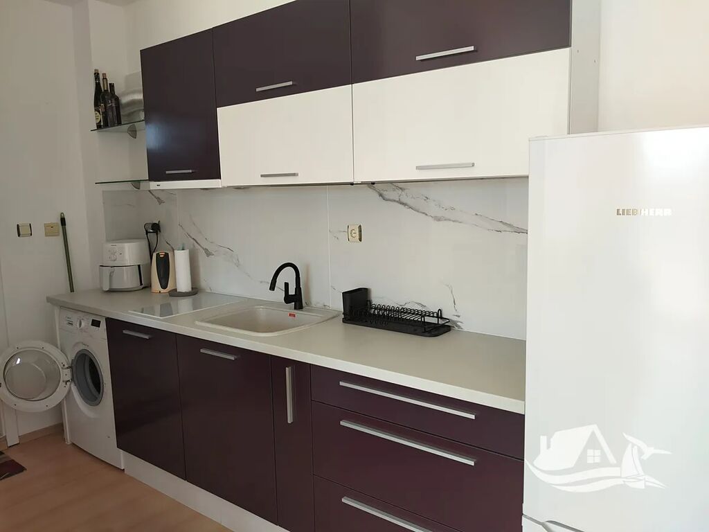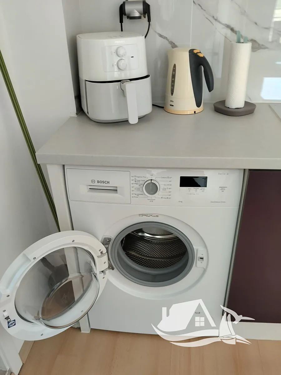 Byt je kompletně zařízený moderním nábytkem a novými spotřebiči, připravený k okamžitému nastěhování nebo pronájmu. Styl interiéru působí vzdušně, prakticky a útulně – přesně tak, jak si přejete u moře žít.