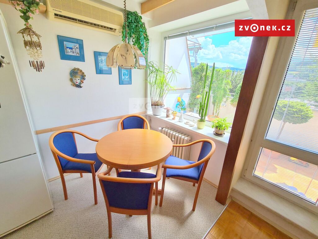 Nabízíme k prodeji exkluzivní byt 5+1 s terasou a samostatnou zděnou garáží v atraktivní lokalitě Zlín - Nad Stráněmi s krásným výhledem na město Zlín. V přízemí bytu je prostorná vstupní chodba, pracovna, koupelna s technickou místností, vestavěné skříně. V patře se nachází chodba, obývací pokoj s výstupem na velkou terasu s krásným jižním výhledem na baťovské dominanty Zlína, kuchyně s jídelnou, 3 samostatné pokoje, koupelna, WC. Součástí bytu je také velký sklep. Celý bytový dům prošel před několika lety kompletní rekonstrukcí (nová střecha, zateplení, rozvody), díky čemuž má velmi příznivé náklady na energie. K dispozici je také klimatizace. Byt je díky své prostornosti vhodný k bydlení i pro větší rodinu, může být alternativou k rodinnému domu a přitom poskytuje veškerý komfort bydlení téměř v centru města. K dispozici je vypracovaný projekt na nadstandardní rekonstrukci tohoto prostorného bytu. Rád Vám poskytnu podrobné informace, případně Vás bytem provedu osobně. Na setkání se těší Mgr. Miroslav Zvonek, realitní makléř.
