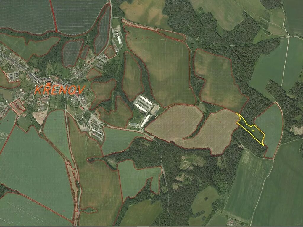 Předmětem dražby je pozemek o výměře 16 180 m2 u obce Křenov. Pozemek je situován