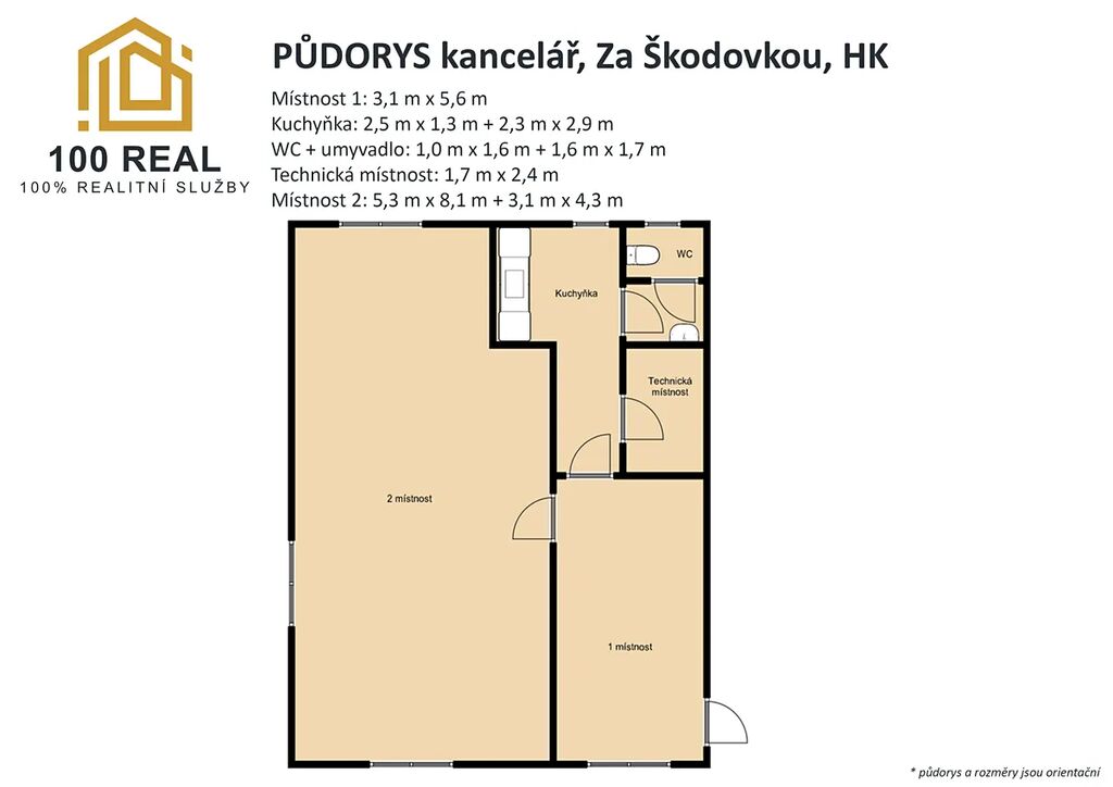 Nabízíme Vám pronájem kancelářských prostor ve zděném domě o užitné ploše 92,7 m². Nachází se ve městě Hradce Králové — v ulici Za Škodovkou.