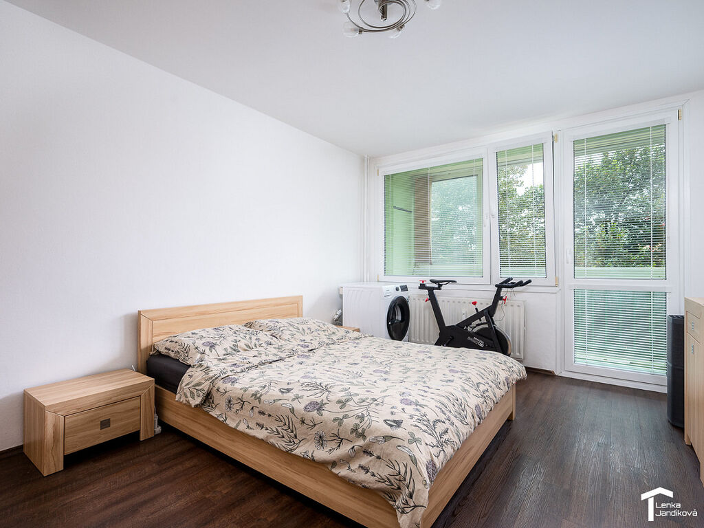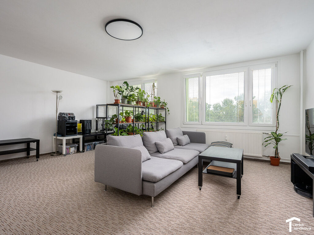 Bytová jednotka je umístěná ve 3. NP a po vstupu do bytu vás zaujme svojí dispozicí. Z prostorné chodby jsou vpravo dva samostatné pokoje, které se v tuto chvíli využívají jako pracovna a ložnice. Na ložnici navazuje prostorná zasklená lodžie o výměře 6m². Z chodby vlevo vejdete do světlého obývacího pokoje, který vás uchvátí svoji velkorysou výměrou 30m² . Zděná koupelna je oddělená od WC a je osazena jak vanou, tak sprchovým koutem. WC je samostatné. Další vstup je do pokoje, na který navazuje kuchyňský kout. V chodbě je k dispozici komora, která nabízí úložný prostor.