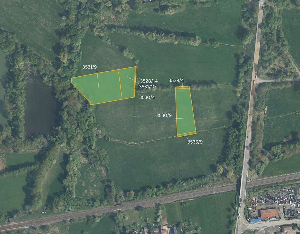 Konkrétně se jedná o parcely č. 3528/14, 3530/4, 3531/10, 3530/9, 3531/9, 3535/9 a 3529/4. Uspořádány jsou do dvou zemědělských celků, travnatých porostů s navazující ostatní a vodní plochou. Obě louky leží u vody.