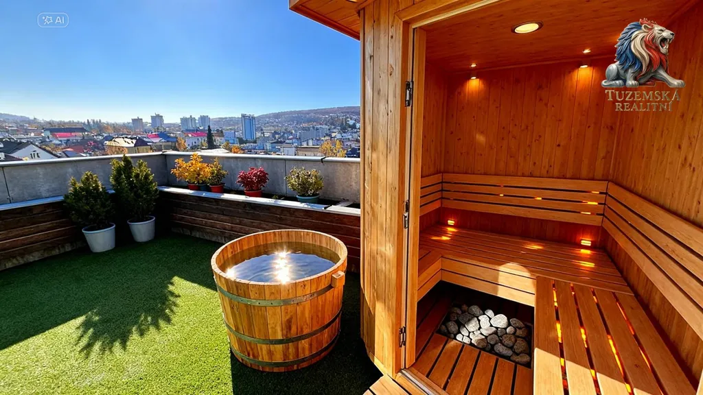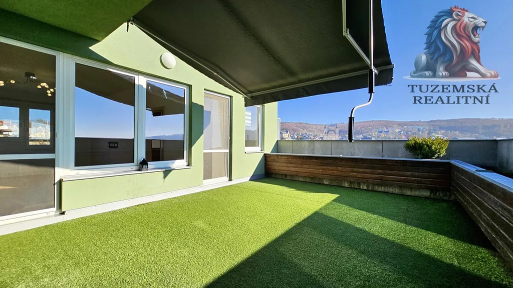Velká terasa 30m2 s úžasným výhledem je opravdu středobodem bydlení v tomto výjimečném bytě. I Vaše první kroky při osobní prohlídce povedou jistě sem. Troje francouzská okna a to z obýváku, kuchyně a ložnice Vás na ni prostě stále zvou.