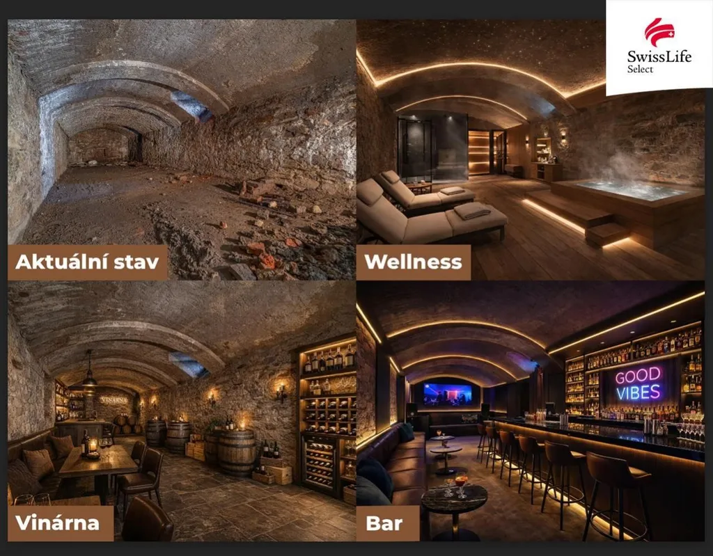 nebytový prostor (276 m) lze přestavět na další apartmány, byty nebo využít pro podnikání například jako ordinaci, soukromou kliniku s apartmány, snídaňové bistro k apartmánům ad.