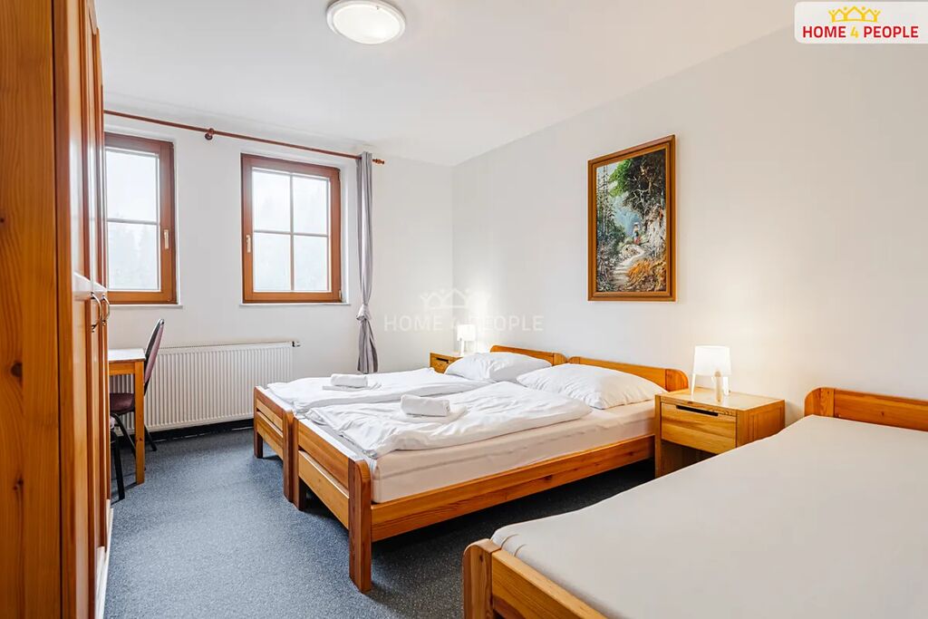 •    2. patro: 1× třílůžkový pokoj a 1× čtyřlůžkový apartmán se dvěma samostatnými ložnicemi