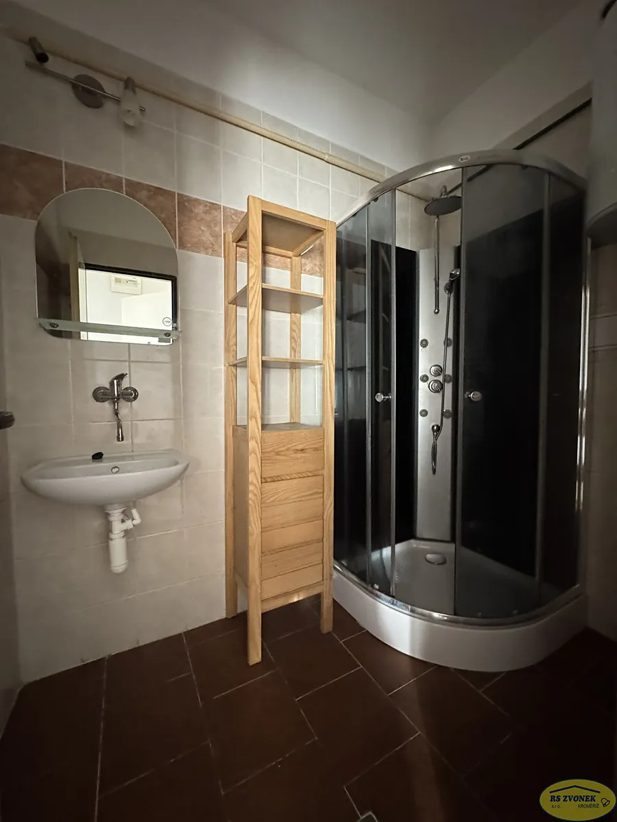 Nabízíme pronájem bytu 2+1 ve zvýšeném přízemí zděného domu v Kojetíně, ul. Kroměřížská. Byt je po částečných úpravách, má prostornou kuchyň, dva neprůchozí pokoje, koupelnu se sprchovým koutem a samostatné wc. K bytu náleží sklad na společném dvoře za domem a sklep v suterénu domu. Vytápění je řešeno lokálně (plynové vafky), teplou vodu zajišťuje elektrický zásobník v koupelně. Okna jsou plastová (3 skla), podlahy jsou pvc a parkety. K ceně nájmu je nutné připočítat zálohy na energie ve výši 3.500,- Kč/měsíc. Majitel požaduje vratnou kauci 30.000,- Kč. K dispozici ihned. PENB G (průkaz nedoložen).