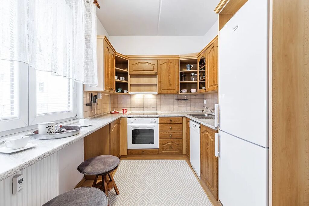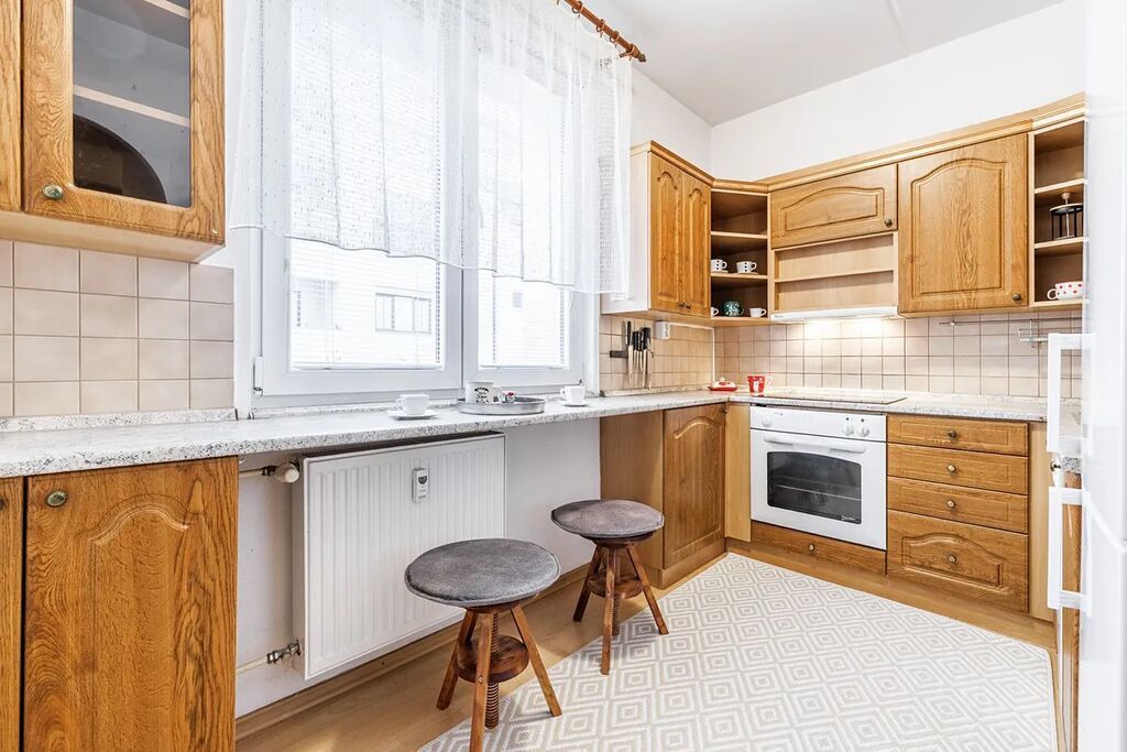 V bytovém domě s výtahem na Vás v 1.patře čeká opravdový domov a to včetně vybavení. Kuchyňská linka v příjemném designu dispozičně oddělená od ostatních pokojů. Ve vybavení nechybí lednička, myčka. Nabízí vše, co od praktické kuchyně očekáváte.