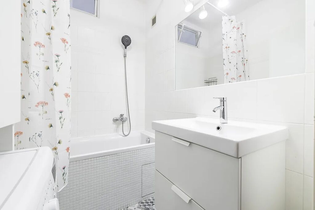 V koupelně k dispozici pračka, úložné prostory v chodbě i jednotlivých místnostech. Stačí se jen nastěhovat.