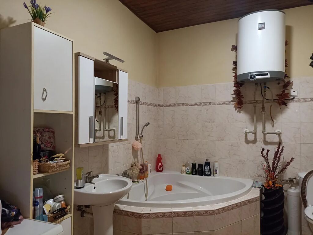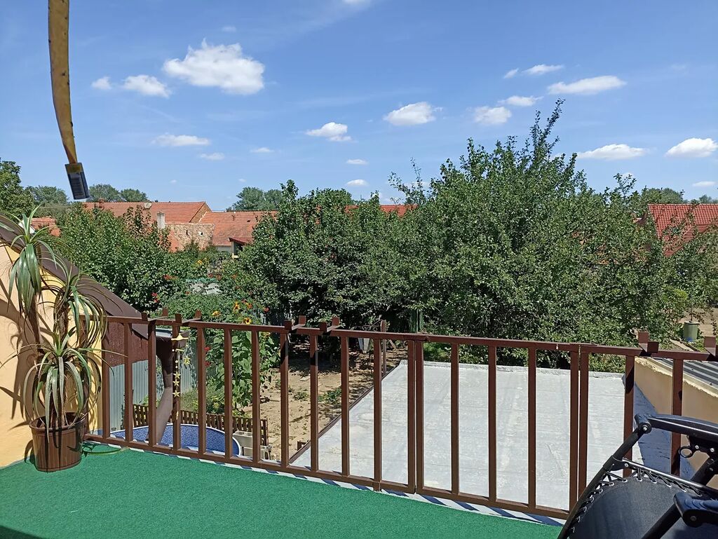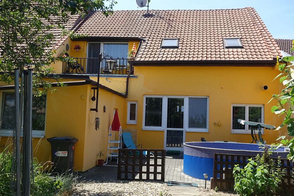 Horní patro disponuje obývacím pokojem 25m2 + kk 12m2 + lodžie 9m2, dále jsou zde pokoje 11m2, 9m2, 9m2 a koupelna+WC 6m2.Za domem je udržovaná zahrádka 327m2.