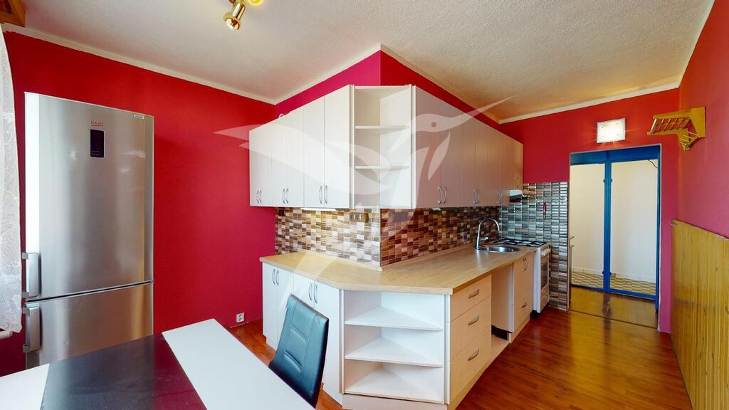 Nemovitost o velikosti 61 m2 se nachází v 8. NP panelového domu s výtahem a skládá se z předsíně, pokoje včetně kuchyňské linky, samostatného pokoje, samostatného pokoje s lodžií, koupelny, toalety a k bytu náleží i sklep situovaný v suterénu bytového domu. Byt se pronajímá jako nezařízený a jeho součásti je kuchyňská linka se sporákem a digestoří + kombinovanou chladničkou. Vytápění a ohřev vody je zajištěn dálkovými dodávkami.