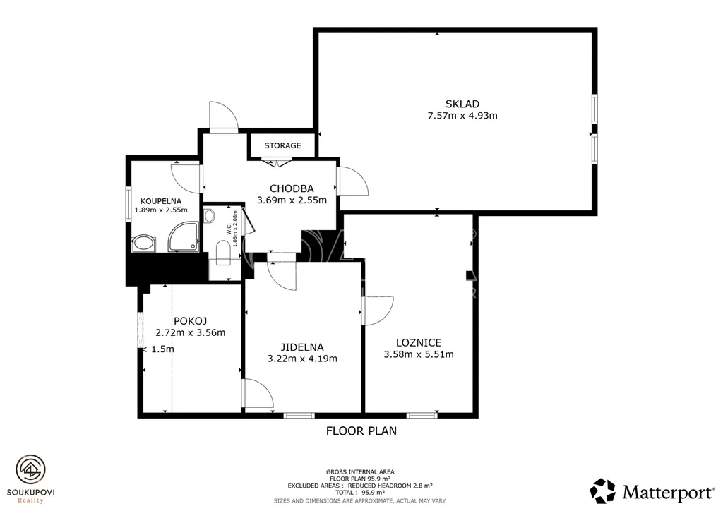 - Podkroví: nedokončená bytová jednotka 3+kk (užitná plocha 87 m²)