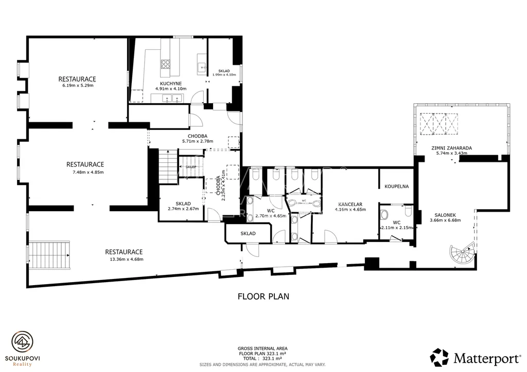 Celková užitná plocha: cca 377 m²