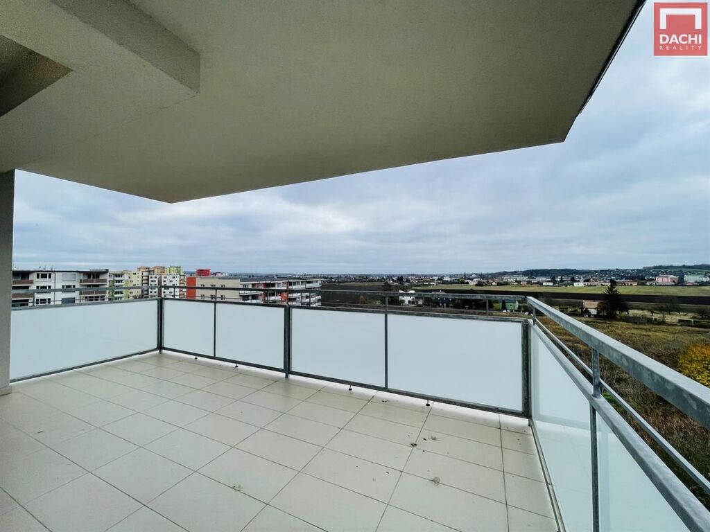 Moderní, prosluněný byt v posledním ( 7. ) patře novostavby, žádaném zejména kvůli nízké hlučnosti a klidu. Součástí bytové jednotky je zastřešená terasa s výhledem na městskou část Slavonín.