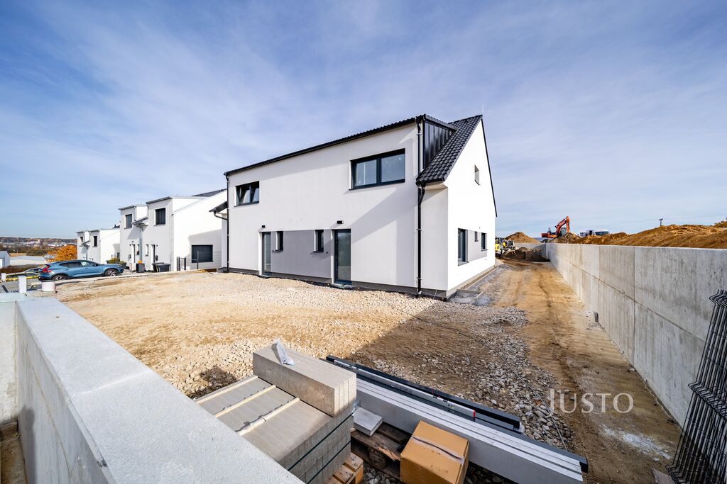 Dispozice 5+kk s užitnou plochou 121 m² nabízí velkorysý prostor, který si zamilujete hned při první prohlídce. Součástí každé jednotky je navíc vlastní zahrada o výměře cca 285 m², dvě parkovací stání, terasa, vlastní tepelné čerpadlo značky Panasonic, nezámrzný venkovní kohout na vodu, příprava na venkovní žaluzie (bez lamel), hotový plot a mnoho dalšího. Zahrada bude předána srovnaná a s navezenou ornicí, připravená k osetí trávníkem. Praktickým benefitem je také dostatečně široký přístup na pozemek kolem jednotky, včetně hotového chodníku.