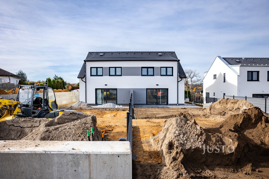 Dispozice 5+kk s užitnou plochou 121 m² nabízí velkorysý prostor, který si zamilujete hned při první prohlídce. Součástí každé jednotky je navíc vlastní zahrada o výměře cca 282 m², dvě parkovací stání, terasa, vlastní tepelné čerpadlo značky Panasonic, nezámrzný venkovní kohout na vodu, příprava na venkovní žaluzie (bez lamel), hotový plot a mnoho dalšího. Zahrada bude předána srovnaná a s navezenou ornicí, připravená k osetí trávníkem. Praktickým benefitem je také dostatečně široký přístup na pozemek kolem jednotky, včetně hotového chodníku.