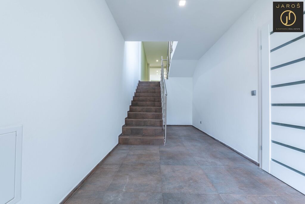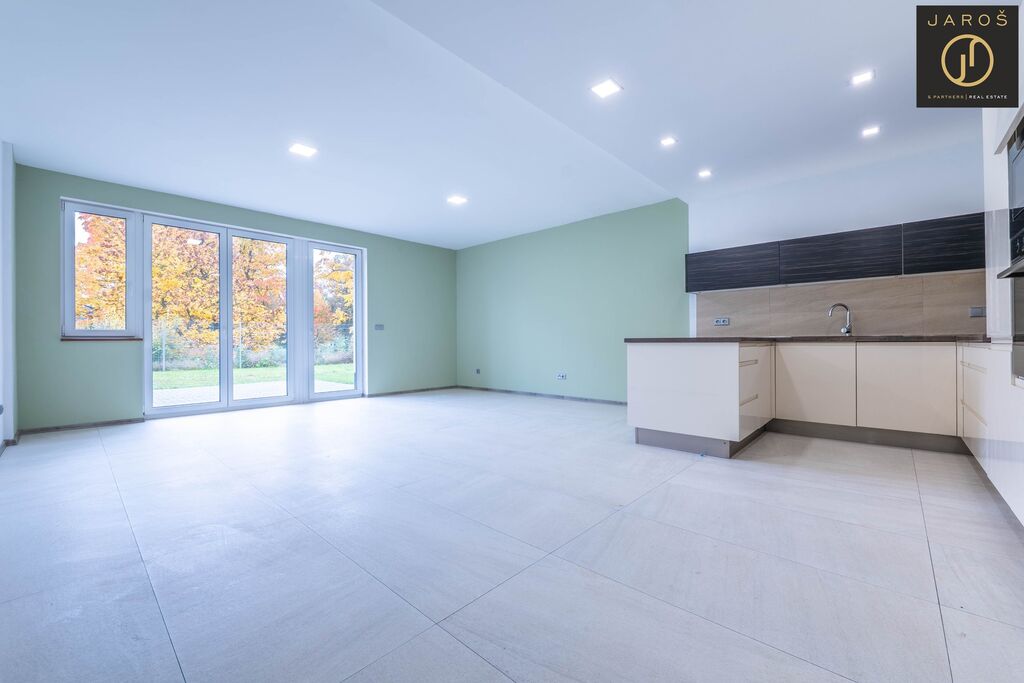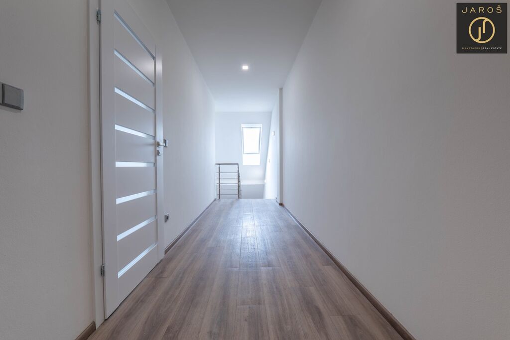 Nabízíme vám k prodeji moderní řadový rodinný dům o dispozici 5+kk s celkovou plochou 234 m² v projektu Rezidence Park Svitavy. Dům nabízí prostorný obývací pokoj s kuchyňským koutem, který přímo navazuje na terasu a zahradu směrem do parku. V přízemí se dále nachází koupelna, pracovna a zádveří. Mezipatro nabízí vstup na terasu směrem do ulice. V patře jsou čtyři samostatné pokoje, koupelna a balkon s příjemným výhledem do zeleně, přístupný z obou pokojů. Součástí je také garáž přístupná ze vstupní chodby a dvě parkovací stání přímo před domem.