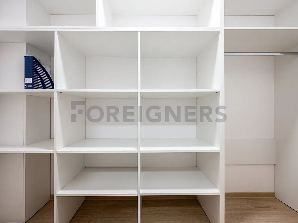 Byt je částečně zařízený a nabízí moderní vybavení pro pohodlné bydlení. Chodba je vybavena botníkem a věšákem. Kuchyň je vybavena vestavěnými spotřebiči – troubou, myčkou a mikrovlnnou troubou, lednice je volně stojící.