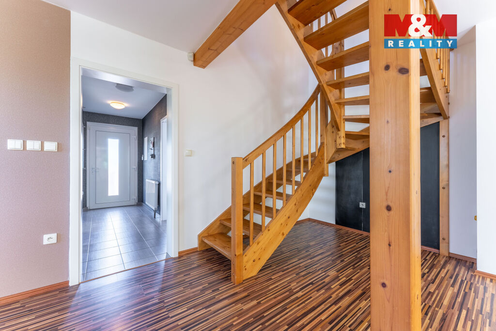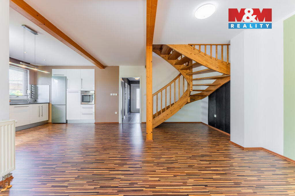 Nabízíme k prodeji moderní a pečlivě udržovaný rodinný dům v oblíbené a tiché části Chýně. Jedná se o kvalitní úspornou dřevostavbu s dispozicí 5+kk, dvěma koupelnami, komorou a celkovou užitnou plochou 113 m², rozloženou do dvou nadzemních podlaží. Dům je situován na pozemku o velikosti 284 m². Součástí domu je prostorná terasa s pergolou, ideální pro odpočinek a rodinné posezení, lodžie v 1.patře, dále praktická pochozí půda, zahradní domek a tři vlastní parkovací stání. Komfort bydlení zvyšují také předokenní rolety instalované v celém domě. Vytápění a ohřev vody zajišťuje plynový kotel, koupelny a chodbu navíc vytápí elektrické rohože. Celý dům je napojený na bezpečnostní službu Jablotron. Nemovitost se nachází ve velmi klidné lokalitě, která zajišťuje dostatek soukromí a zároveň dobrou dostupnost do Prahy i občanskou vybavenost v místě. Dům je ve výborném stavu a připraven k okamžitému nastěhování. Neváhejte a přijďte se podívat na místo, kde se budete cítit skutečně doma.