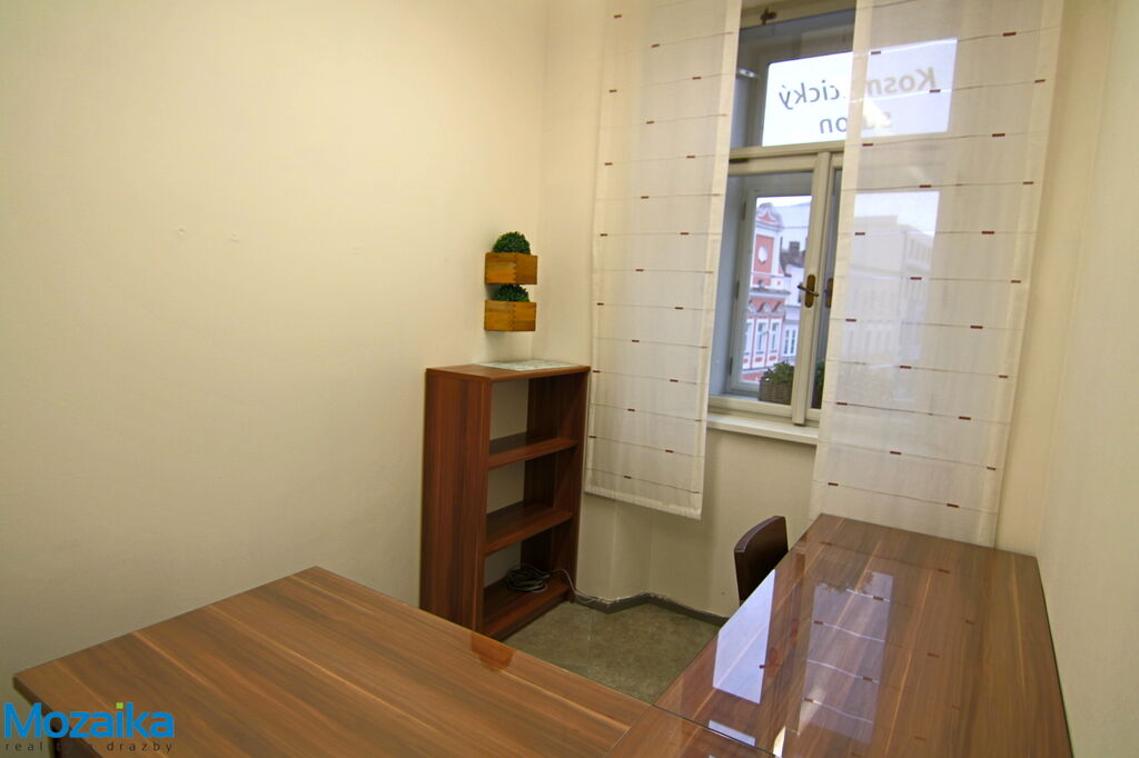 Jedná se o jednu samostatnou místnost s oknem přímo do náměstí, která je ideální pro provozování kanceláře, poskytování služeb, poradenství nebo jiné profesní činnosti. Prostor je situován v příjemném prostředí nájemního domu, kde již úspěšně fungují další služby jako kadeřnictví, tetovací salon a masáže, což vytváří příjemnou a živou atmosféru s pravidelnou klientelou.