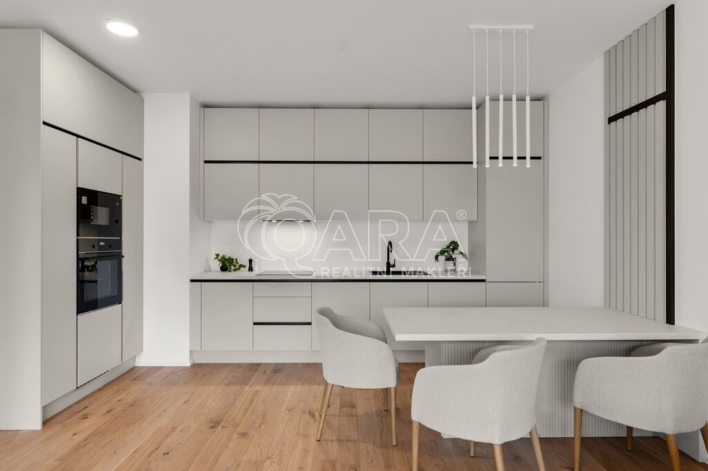 Byt je vybaven stropním vytápěním a chlazením, centrálním větráním s rekuperací, venkovními žaluziemi a chytrou domácností, kterou lze ovládat na dálku. Kvalitní dřevěné podlahy, vestavěný nábytek a prvotřídní spotřebiče tvoří harmonický celek, který uspokojí i ty nejnáročnější nájemce.