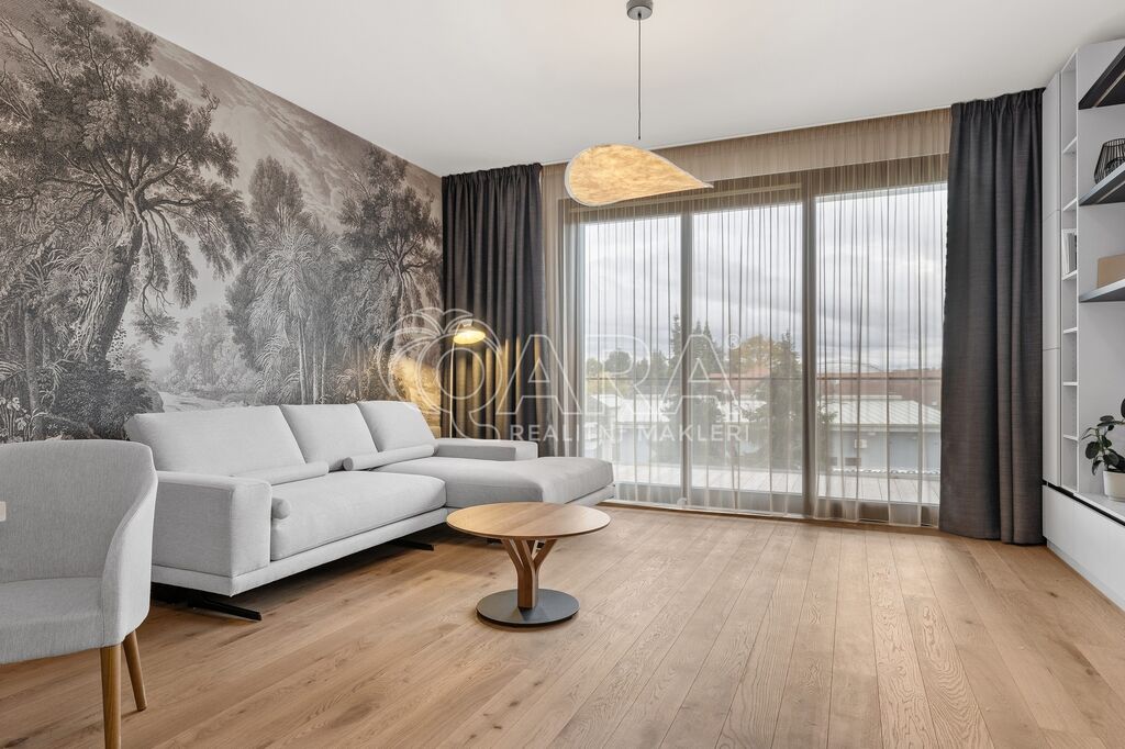 Tento slunný byt s jižní orientací se nachází ve 2. nadzemním podlaží nízkonákladové budovy (energetický štítek náročnosti A) s výtahem, kamerami a inteligentním systémem Loxone, který umožňuje odemykání dveří pomocí NFC Code Touch a Loxone Intercomu.