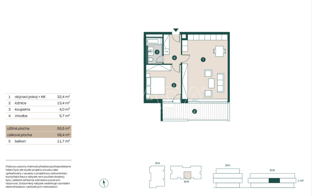 Luxusní byt 2+kk ve kterém ještě nikdo nebydlel s balkonem, sklepem a parkovacím stáním – Praha 7, Troja.