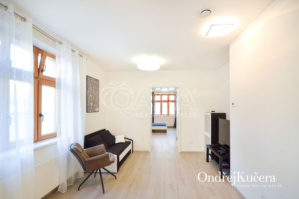 Zrekonstruovaný a světlý byt, dispozičně řešený jako 2+kk o ploše 44,7 m2 se nachází ve druhém patře kompletně zrekonstruovaného domu bez výtahu.