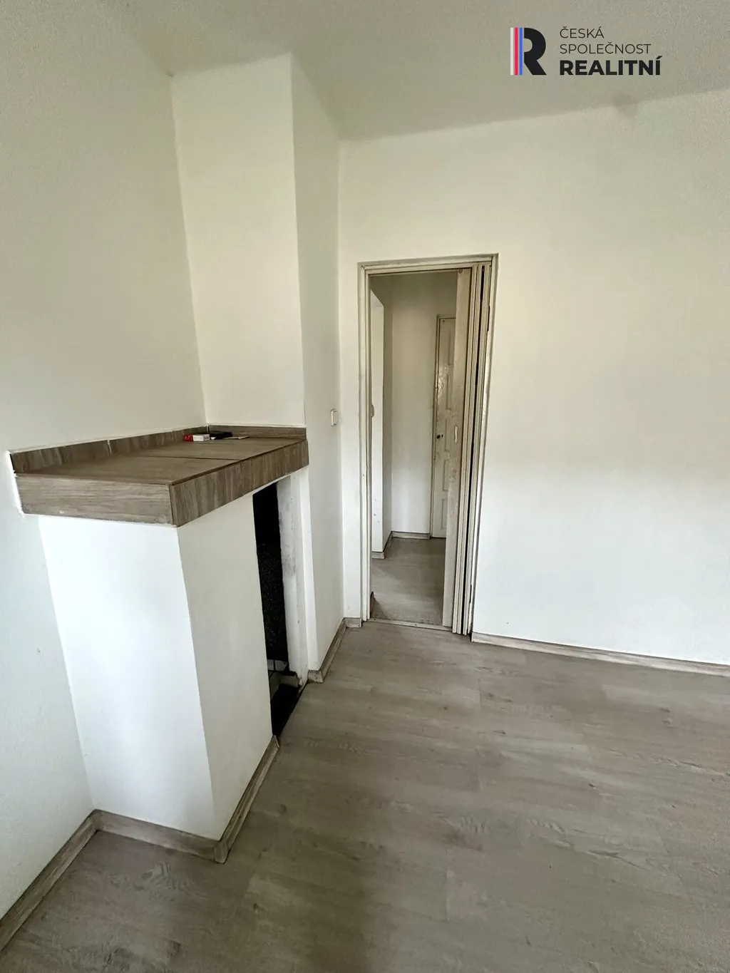 Druhý byt se nachází v patře, je v původním stavu, podlahy jsou pokryté kobercem a linoleem, a vytápění zajišťují kamna na tuhá paliva.