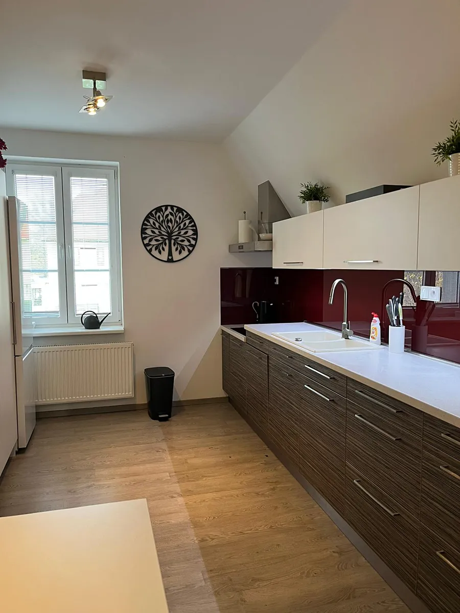 Nabízíme k pronájmu velký mezonetový byt 4+1 o výměře 170 m2 v rodinném domě v Liberci - Ruprechticích. Jedná se o klidnou lokalitu ulice Zákopnická. Byt se rozkládá v prvním patře a podkroví domu se samostatným vchodem po kovovém schodišti. Byt je pronajímán včetně zařízení viz foto. Kuchyňská linka je s vestavěnými spotřebiči včetně vestavěné myčky, ledničky, mrazáku a dalších. Na patře jsou kuchyň, koupelna, samostatné WC, ložnice se šatnou, samostatná šatna, velký obývací pokoj s krbovými kamny a balkónem a dále volný pokoj. V podkroví dále koupelna, velký dětský pokoj a hala. V místě je kompletní občanská vybavenost (školka, škola, supermarket, zdravotní středisko, MHD). Volný ihned. Nekuřácký byt bez zvířat. Vratná kauce 35.000,- Kč, provize RK 27.000,- Kč. Vzhledem k tomu, že před vytvořením prezentace nebyl majitelem dodán platný PENB, je tato nemovitost v souladu se zákonem dočasně zařazena do poslední energetické třídy G.