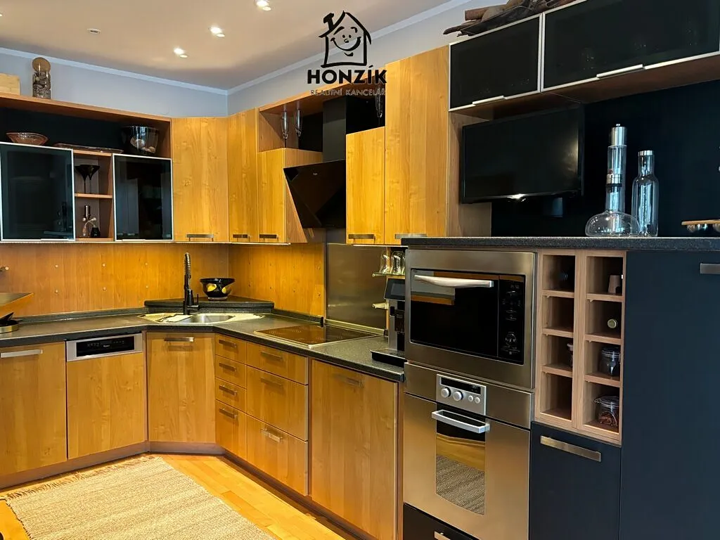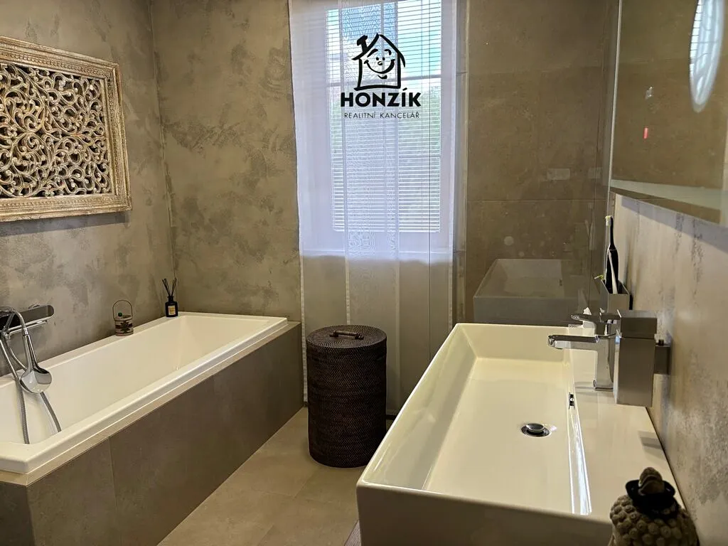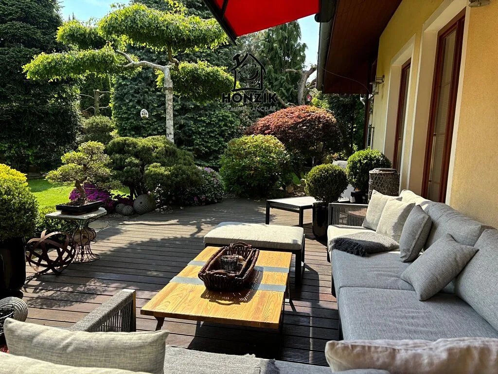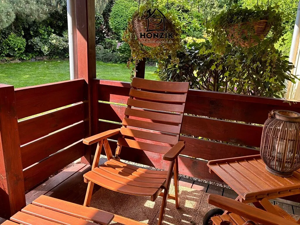 Nabízíme na prodej krásný, samostatně stojící rodinný dům z roku 2001 o dispozici 4+1 s jídelnou, zimní zahradou, terasou a překrásnou vzrostlou zahradou v Zahořanech u Mníšku pod Brdy. Dům je přízemní s čistou obytnou plochou 121 m2 (bez teras a zimní zahrady), je postaven na pozemku o výměře 1140 m2, v klidné lokalitě v zástavbě rodinných domů a vil. Je velice dobře dispozičně řešen, obývák s krbem je propojen s prostornou kuchyní a jídelnou, pokoje jsou vesměs neprůchozí, má dostatečně velkou koupelnu i komoru a přes terasu s markýzou, posezením a novou výřivkou, je prakticky propojen se zahradou. Kuchyň je vybavena veškerými spotřebiči. Dům je napojen na veškeré inženýrské sítě - elektro, vodovod a kanalizace, kromě plynu. Vytápění a ohřev vody zajišťuje tepelné čerpadlo z roku 2020. Koupelna a toaleta má podlahové teplovodní vytápění a je po rekonstrukci v 2020. Parkování pro dvě auta je řešeno zastřešeným parkovacím stáním. Zahrada je nádherná, udržovaná a již se vzrostlými stromy, jinými keři a rostlinami a nachází se na ní také zahradní jezírko. Dům splňuje předpoklady moderního, pohodlného a energeticky nenáročného bydlení. Velmi klidná a žádaná lokalita v čistém prostředí s dobrou dostupností Prahy (Smíchovské nádraží a metro cca 30 min.) s dostupností všech potřebných služeb v nedalekém Mníšku pod Brdy nebo v Praze.