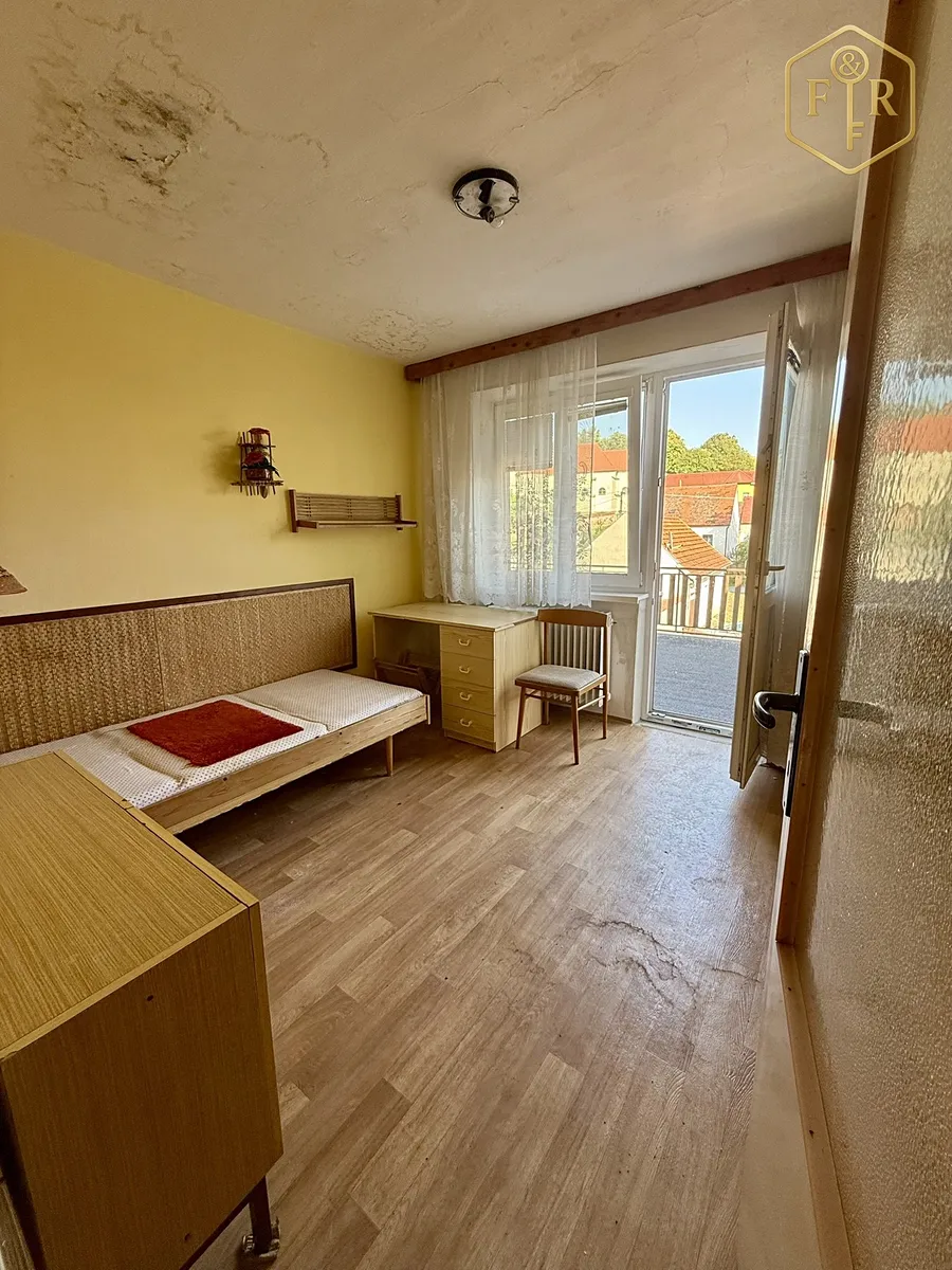 Dispozice 4+1 zahrnuje v přízemí chodbu, kuchyni, obývací pokoj, ložnici, koupelnu a WC, v podkroví pak dva pokoje, komoru a terasu s výhledem do dvora a možnost vybudování ještě jednoho pokoje směrem orientovaný směrem na Západ. K dispozici je také sklep a menší dvorní sklad. Je orientován na Východ a Západ.
