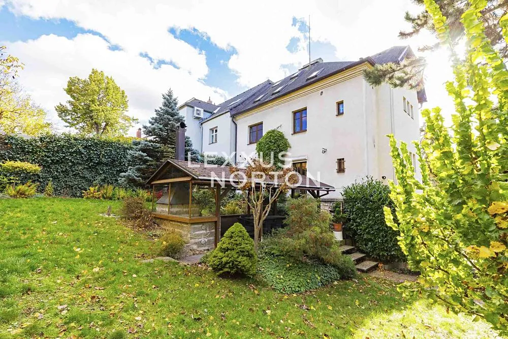 Za domem se nachází velká zahrada se vzrostlými stromy a krytým altánem s grilem. Zeleň oddělující sousední pozemky nabízí cenné soukromí a příjemné posezení po většinu roku.