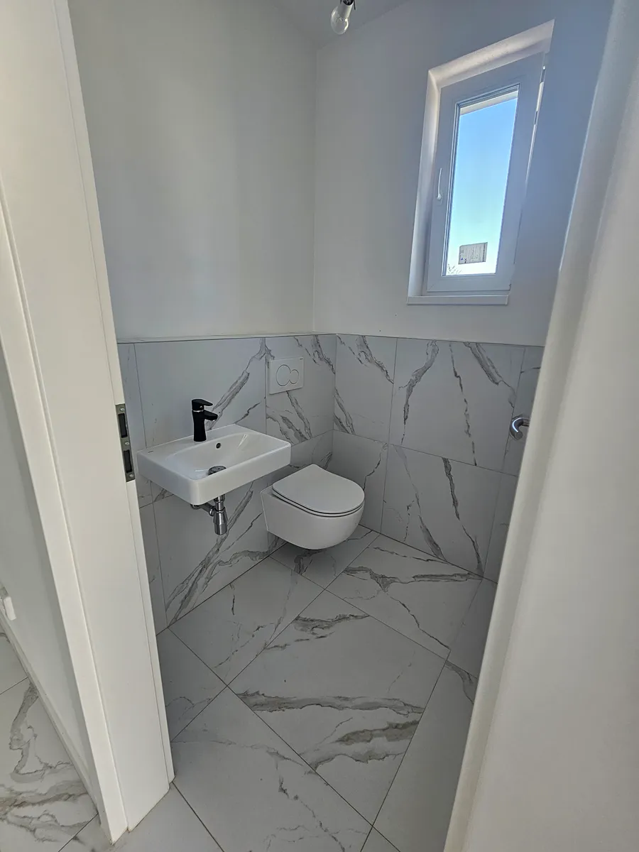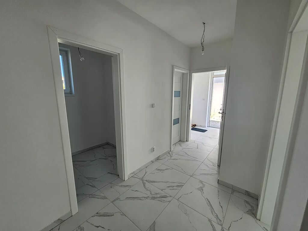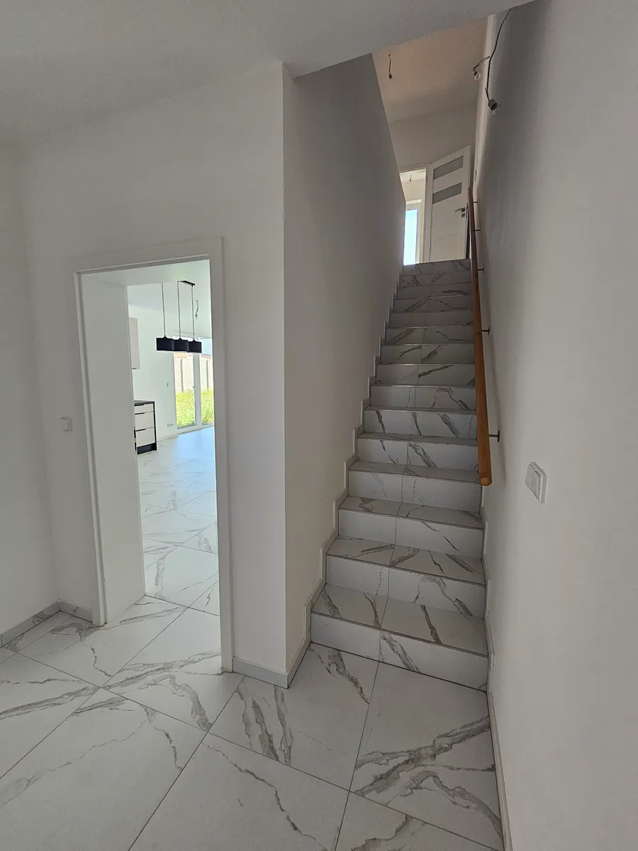 Pronájem úsporné novostavby RD o dispozici 4+kk včetně samostatné velkorysé garáže o celkové užitné ploše 137 m2 a pozemkem 290 m2. V přízemí domu se nachází 2 předsíně, obývací pokoj s kuchyní a špízí, 2 technické místnosti, v 1. patře naleznete 3 pokoje, velkorysou koupelnu a šatnu. Obývací pokoj se vstupem na zahradu má novou kuchyň včetně vestavěných spotřebičů.