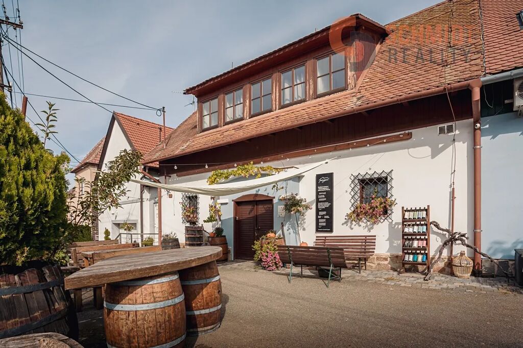 Exkluzivně nabízíme k prodeji dům v obci Perná, který v sobě spojuje klidné bydlení a autentickou vinařskou atmosféru. Předpokládaná užitná plocha nemovitosti činí cca 300 m² a zahrada o zjištěné ploše 1 429 m². Nemovitost disponuje třemi dvoulůžkovými pokoji, každý s vlastní koupelnou a společnou kuchyňkou a jeden separé apartmán (4 lůžka, sociální zázemí, kuchyňka), dále technickým zázemím, společenskou místností a majestátnými sklepy z 18. stol.