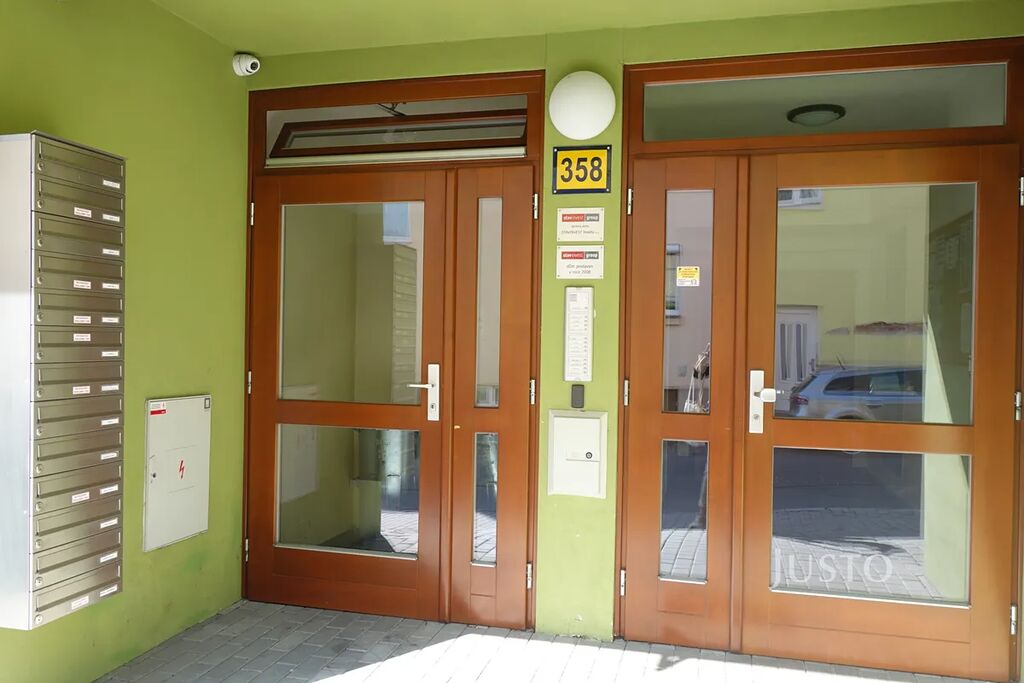 Parkování před domem, vstup do domu na čip, dům je zabezpečen kamerovým systémem.