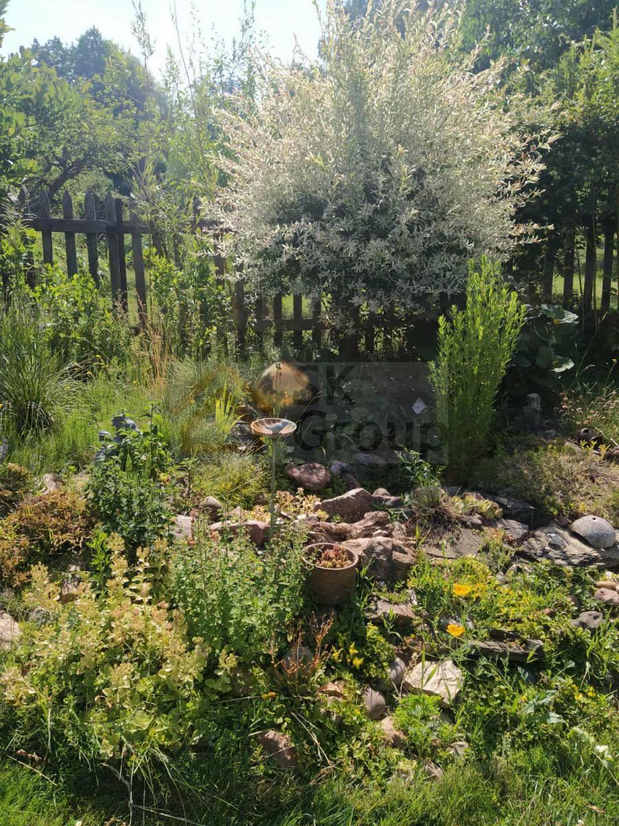 Na zahradě je 10 ovocných stromů, 10 keřů angreštu a rybízu, jezírko a 5 zvýšených záhonů. Dále je zde přistavěný skleník 3x1 m..