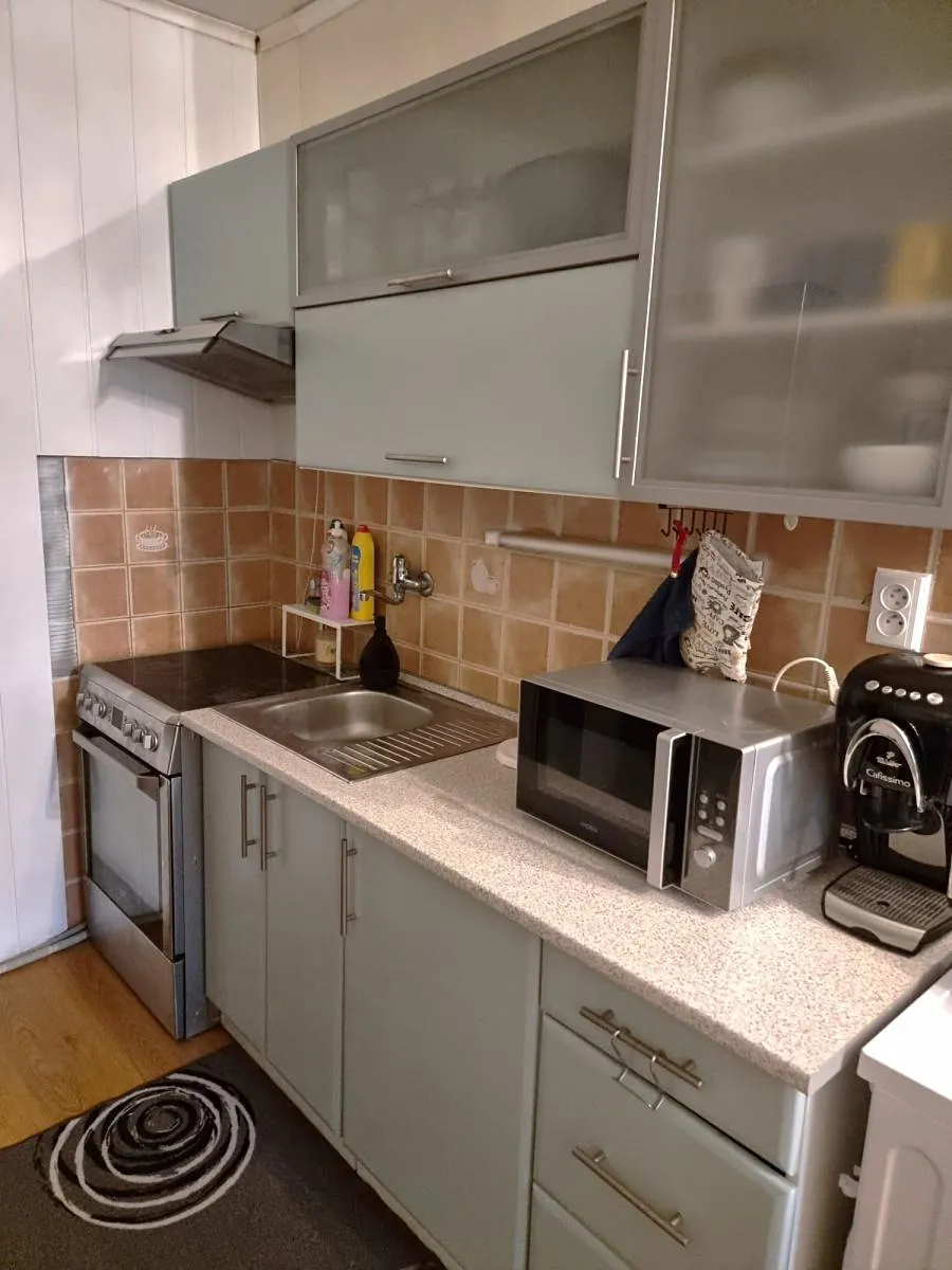 Byt je zařízený a připraven k okamžitému nastěhování. Je zde menší kuchyňská linka s elektrickým sporákem.. V koupelně je vana obložená moderními dlaždicemi a oddělena příčkou od toalety.