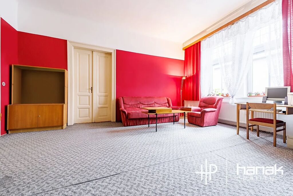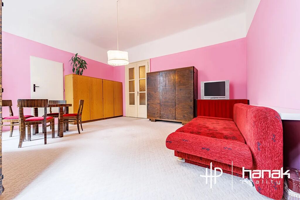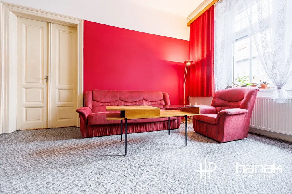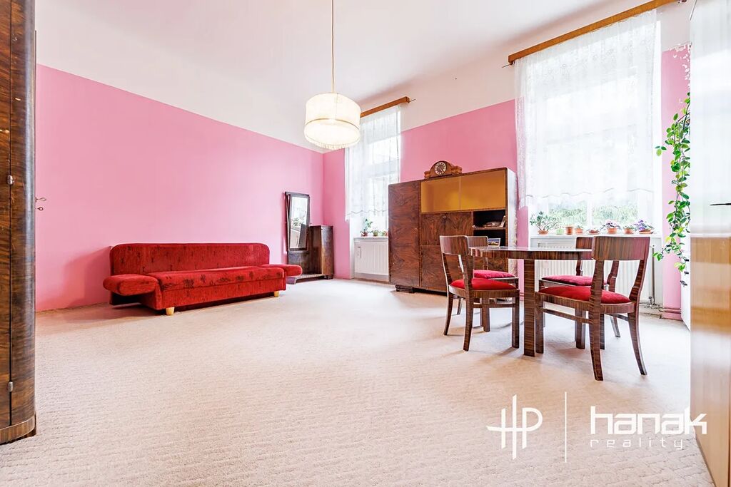 Dominantou nemovitosti jsou tři velké, dobře prosvětlené pokoje, ve kterých výborně vyniknou vysoké téměř čtyř-metrové stropy. Ložnice mají výměru 30 a 32 m2 a je možné je rozdělit. Obývací pokoj má atypický tvar a nabízí možnost umístění kuchyňské linky.